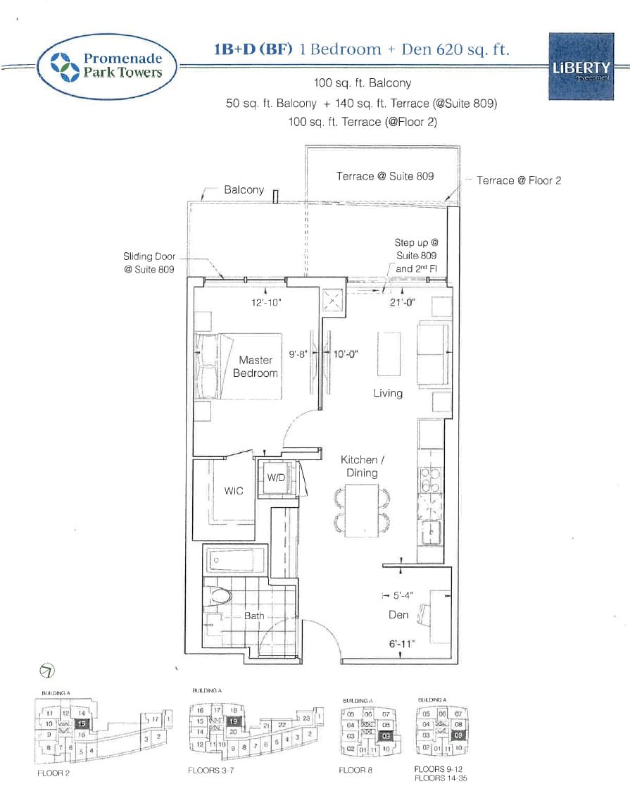 1BR + Den | 620 SQFT πCondo ππ¬π¬π’π π§π¦ππ§π πππ₯π at Promenade Park Towers in Thornhill π